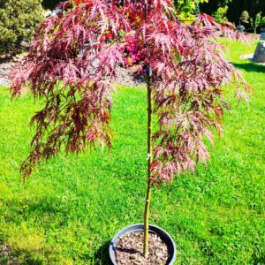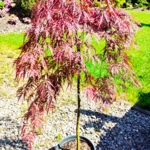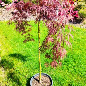 Klon palmowy „Garnet”  charakteryzuje się pięknym bordowo-czerwonym wybarwieniem liści. Drzewko atrakcyjne jest nawet w okresie zimowym (po opadnięciu liści) gdyż ukazuje swoje pędy w kolorze bordowym. Polecana do nasadzeń w miejscach wyeksponowanych, do donic na tarasy i balkony bądź w każdym przydomowym ogrodzie. Wielkość rośliny oferowanej w sprzedaży: ok. 140cm wraz z donicą.